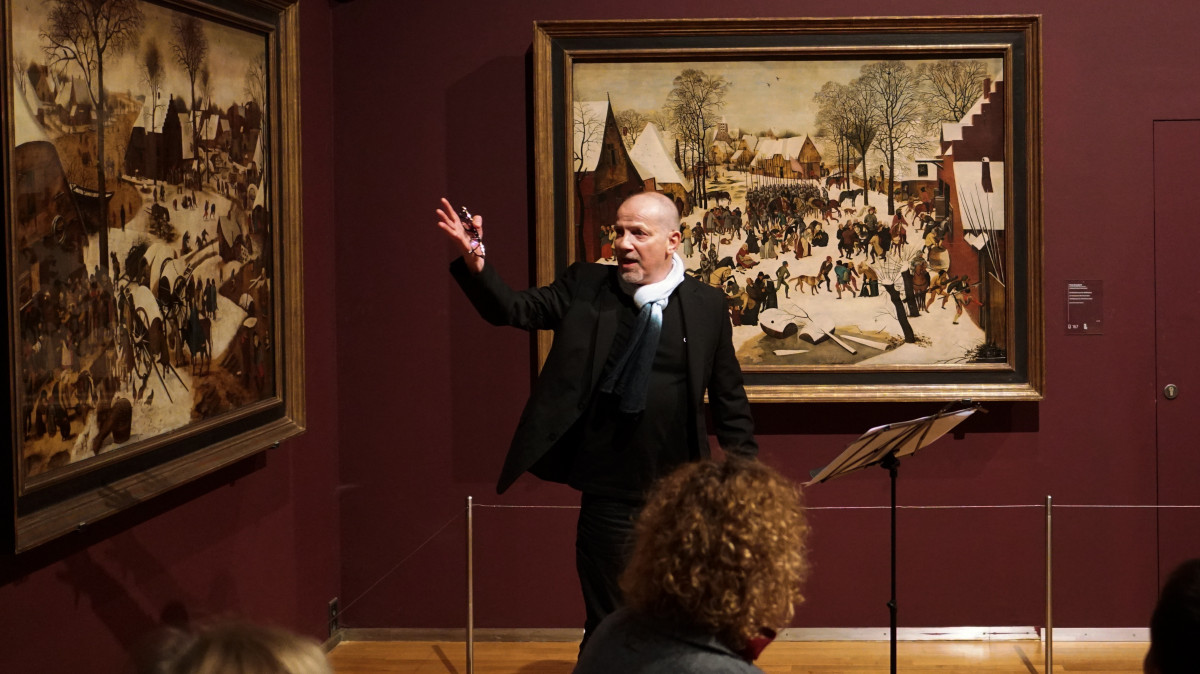 Sabine van Sprang (RMFAB) introducing the works for Pieter Bruegel the Elder and Pieter Brueghel at the Royal Museums of Fine Arts Belgium.