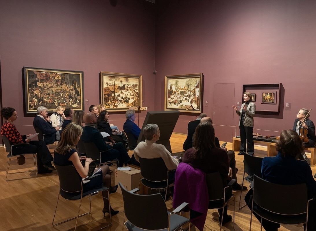 Here is a selection of photographs documenting last week’s concert at the Royal Museums of Fine Arts of Belgium. The event featured Peter Sheppard Skaerved who performed solo violin and viola works in the museum’s Bruegel Room, surrounded by paintings from Pieter Bruegel the Elder and Pieter Brueghel the Younger. Peter played eight of Nigel’s solo violin and viola miniatures from Book One of ‘BRUEG[H]EL’S BRUSH’, alongside music composed during the Bruegel family’s era.